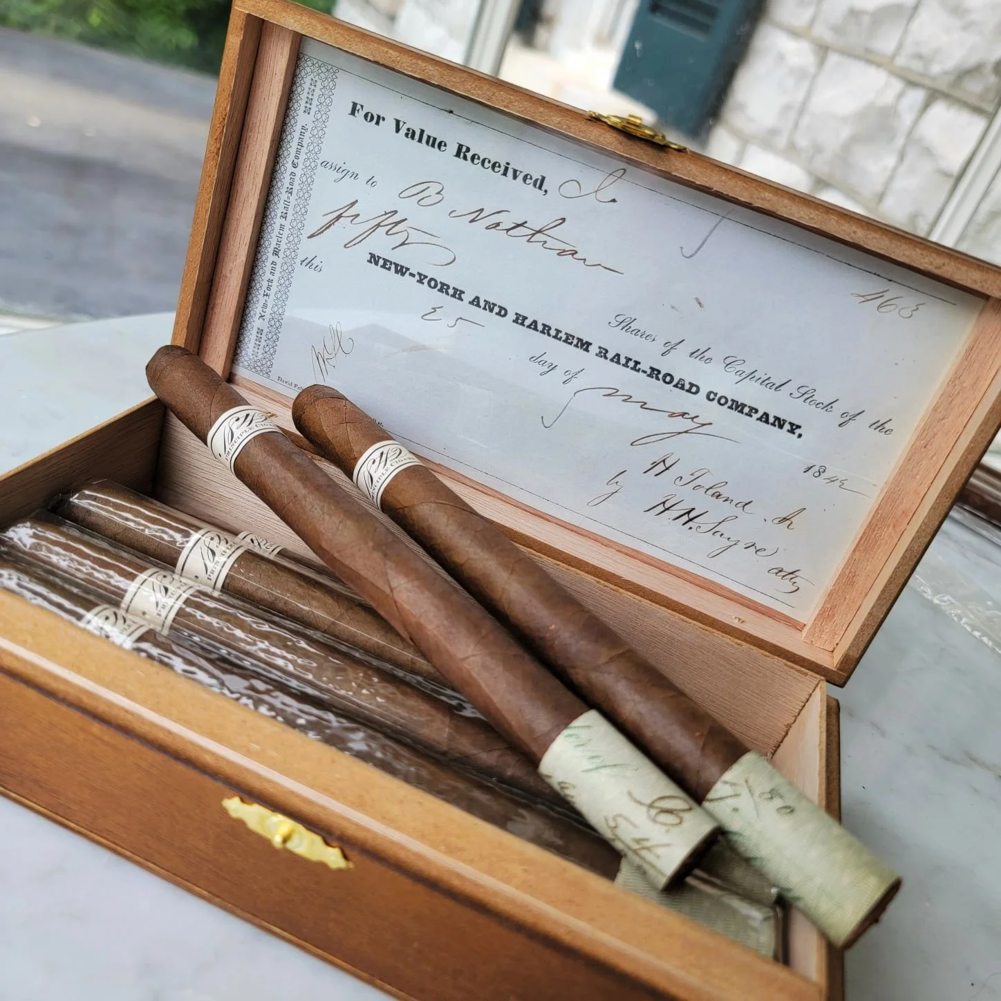 The original certificate inside each box was printed and issued in New York City in 1842. The New York & Harlem Railroad was the world’s first street railway and the only railroad in Manhattan at the time. It was purchased by Cornelius Vanderbilt in 1864.